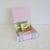 Hübsche Holzschachtel mit Verschluss, Verzierung schabloniert und Herzli auf dem Deckel. Farbe: Rosa/Hellblau. Masse: ca. 23x24x9cm. Ohne Inhalt.