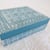 Schöne Holz-Schatulle, schabloniert. Farbe: Duck egg blue/Weiss. Masse ca. 13x10x5.5cm. Lieferung ohne Inhalt.